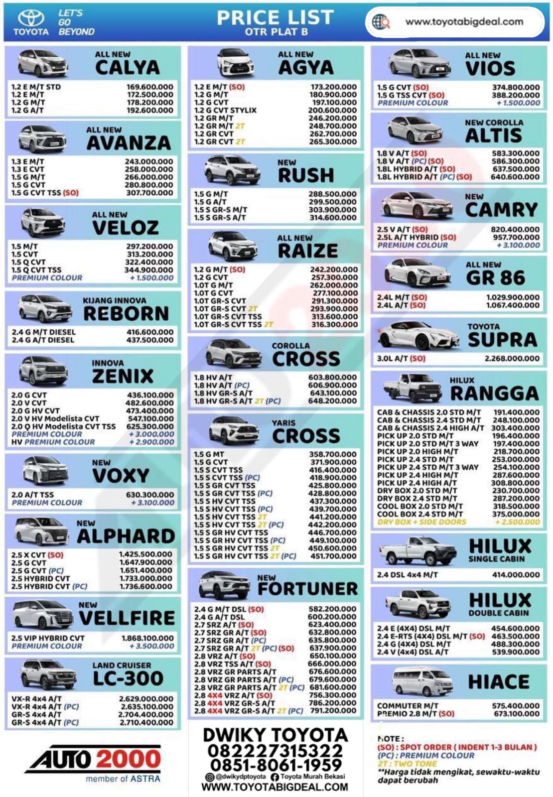 Media Promosi Dealer Resmi Toyota Auto2000 Bekasi Timur, melayani Penjualan Mobil Toyota se-Jabodetabek. kami memberikan segala kemudahan dan kepuasan pelanggan untuk memilih mana varian mobil yang diinginkan. Menjadi prioritas utama kami untuk menciptakan kenyamanan pelanggan.